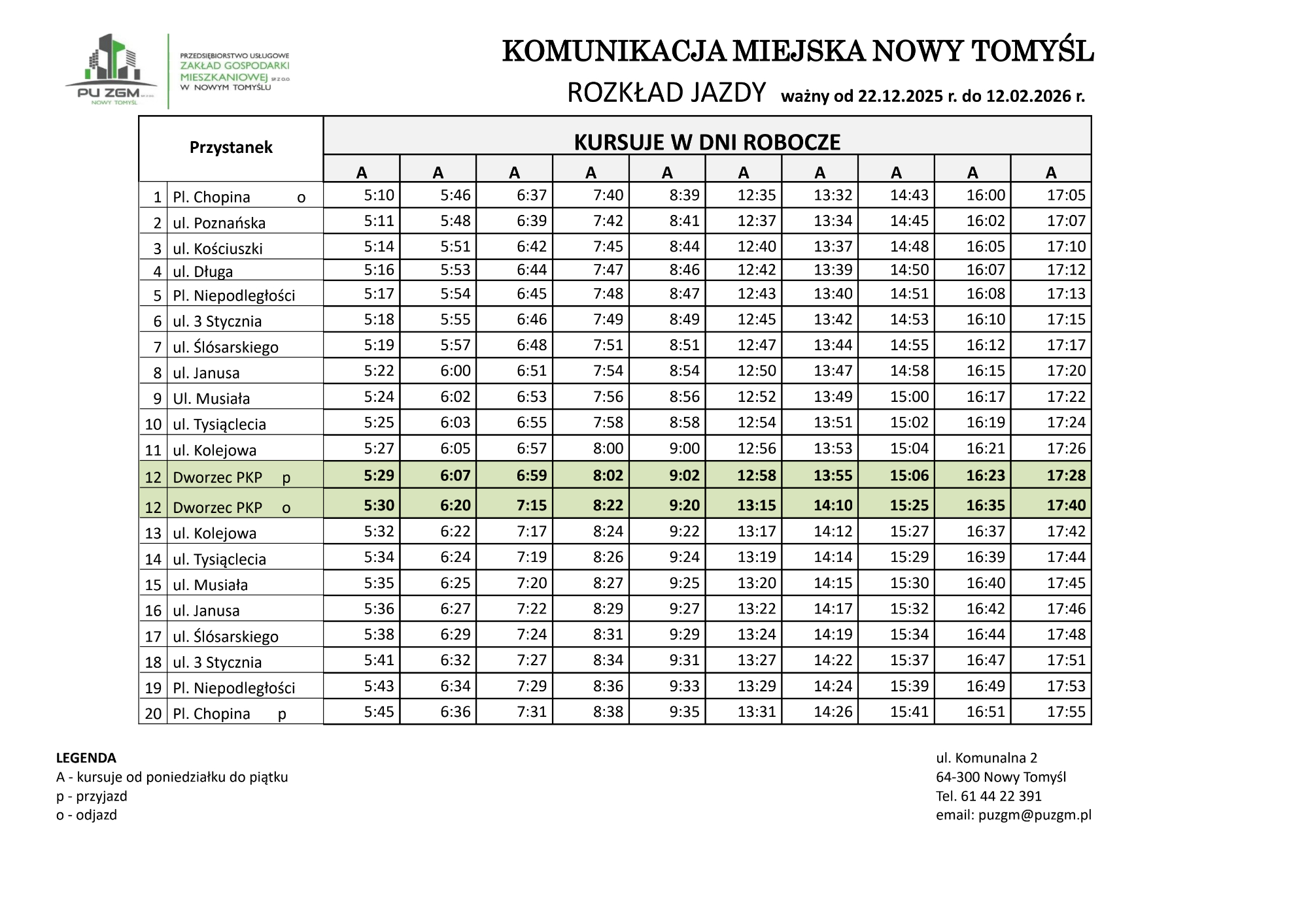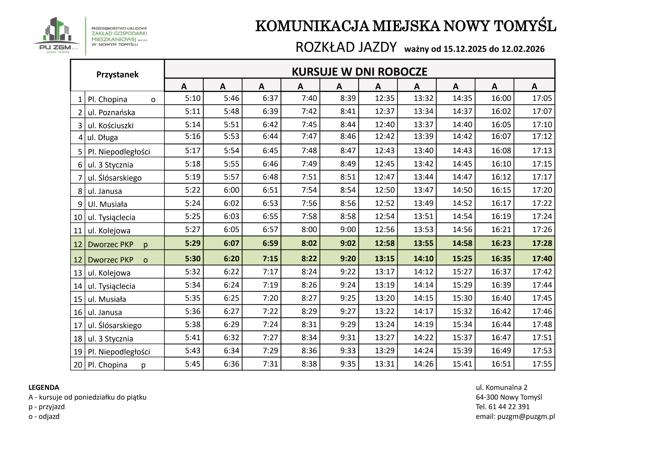 Rozkład jazdy obowiązujący od 15.12.2025 do